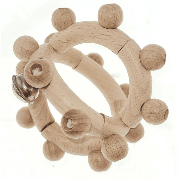 Diese farbenfrohe und kindgerechte Holzrassel ist deinem Baby beim