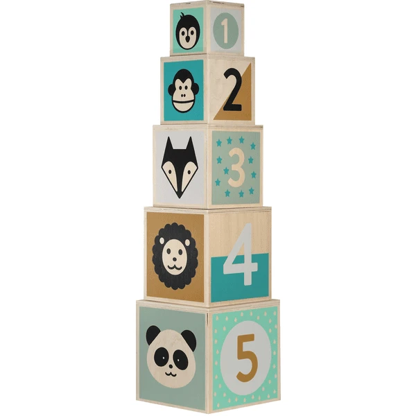 des Zahlenverständnisses des Kindes - 5 Holzklötze mit Tiermotiven: Zum Stapeln und Ineinanderstecken