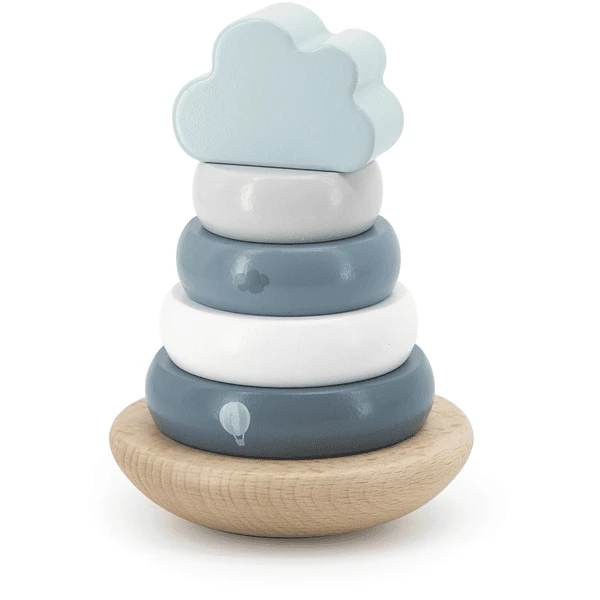 - Stapel die Ringe von groß nach klein und schließ mit einem schönen oberen Block ab