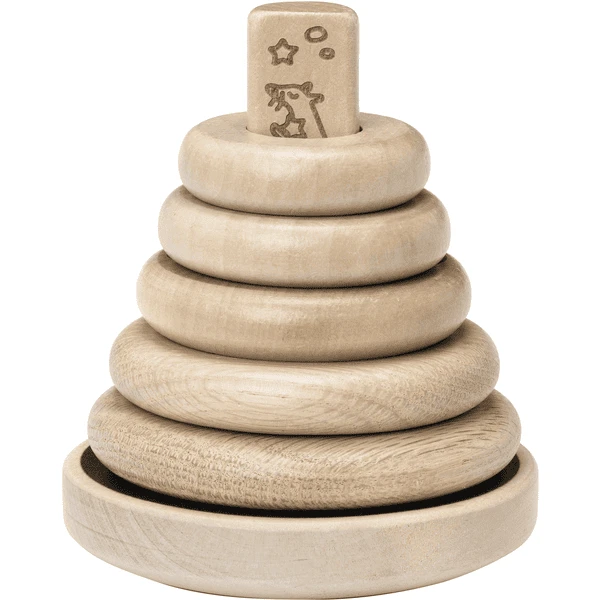 - Die Premium-Holzversion des Mickis Stapelspielzeugs zeigt eingravierte