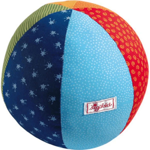 Lustig kullert der große sigikid Softball über den Boden. Auf dem Rücken